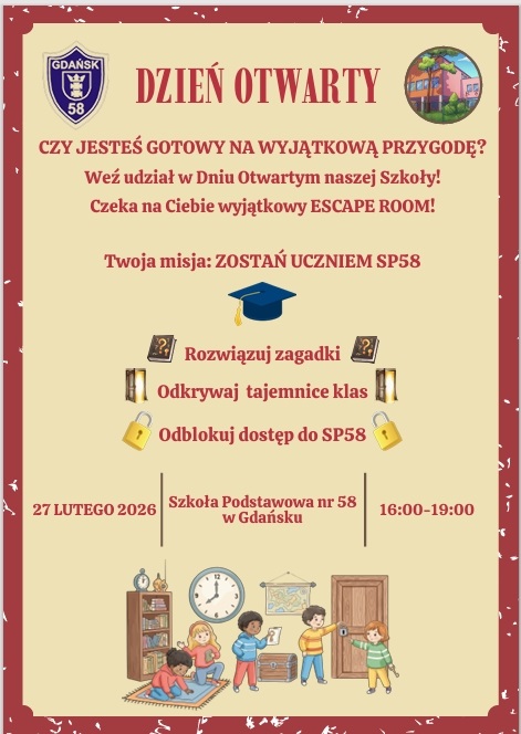 Już 27 lutego w piątek zapraszamy na DZIEŃ OTWARTY SP 58 w Gdańsku!
