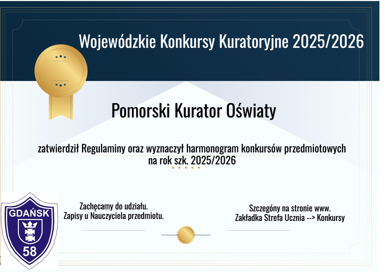 Terminarz Wojewódzkich Konkursów Przedmiotowych dla uczniów klas IV – VIII szkół podstawowych województwa pomorskiego w roku szkolnym 2025/ 2026